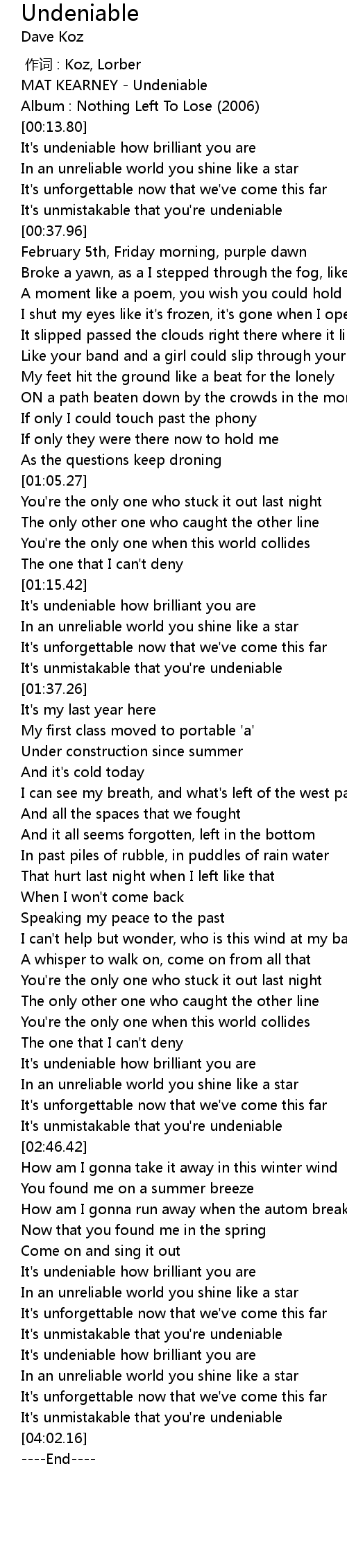 | [00:09.77] | MAT KEARNEY - Undeniable |