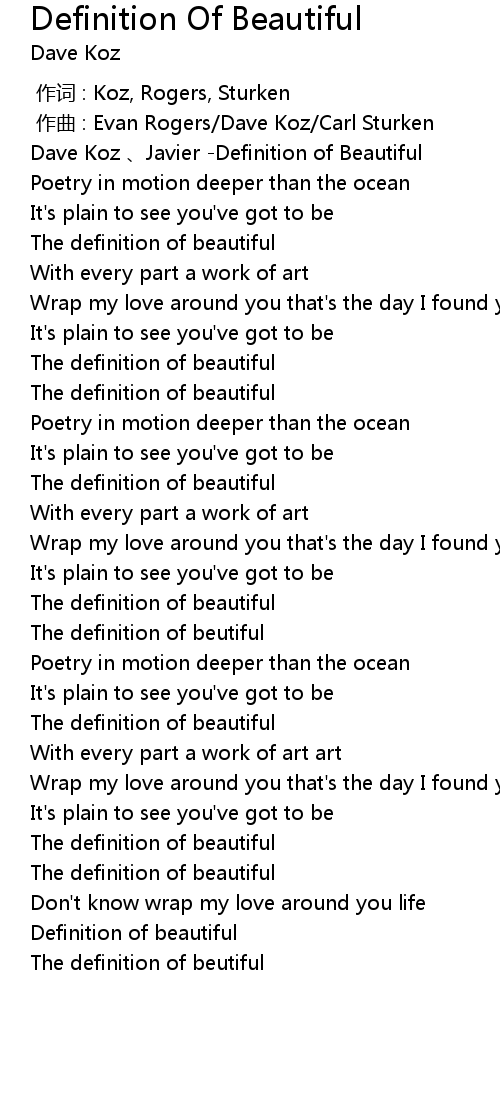 | [01:11.840] | The definition of beautiful |