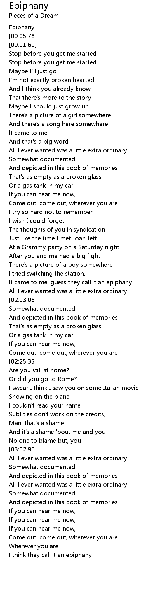 It came to me, guess they call it an epiphany |