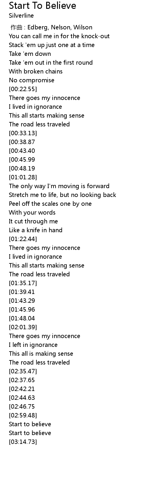 | [02:57.67][02:46.75] | And start to believe |