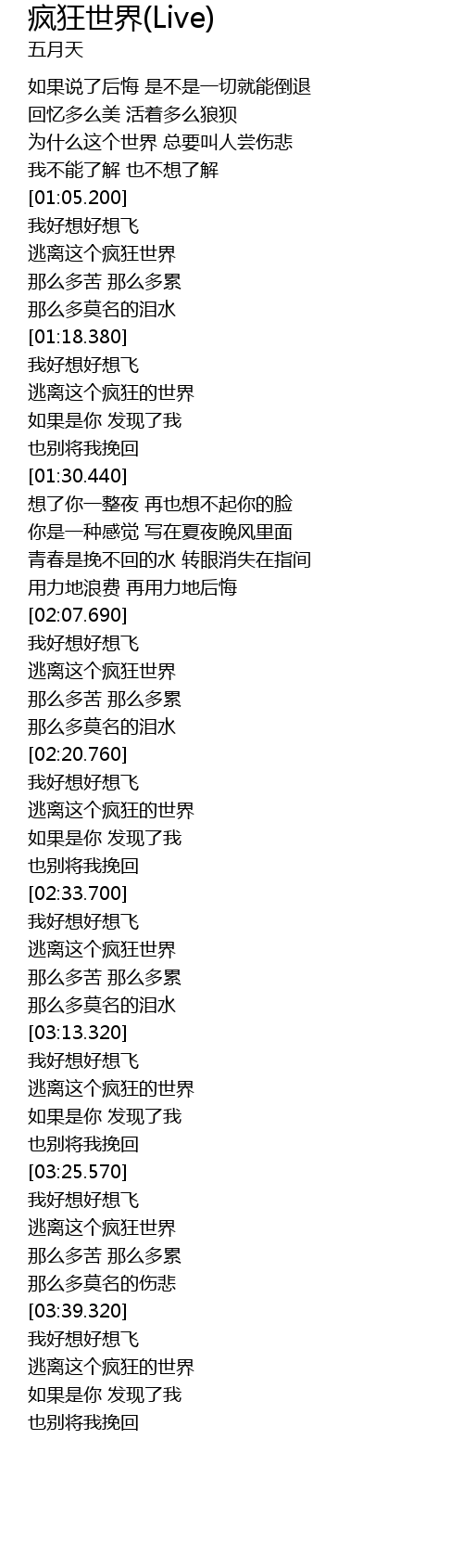 | [03:03.750] | 逃离这个疯狂世界 |