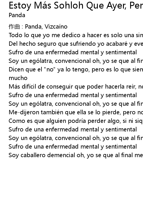 | Song | Estoy Más Sohloh Que Ayer, Pero Menos Que Mañana |