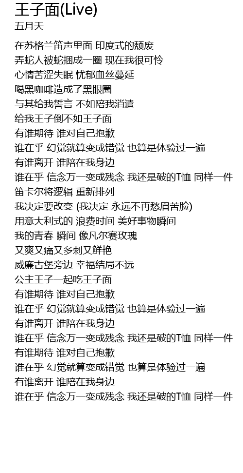 | [03:03.330] | 谁在乎 信念万一变成残念 我还是破的T恤 同样一件 |