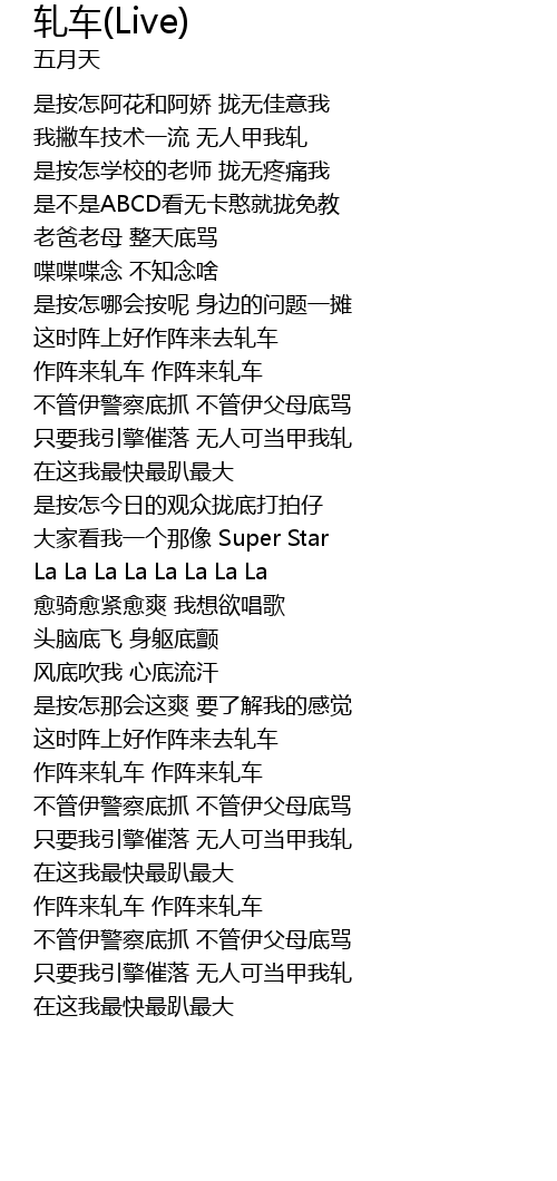 | Song | 轧车(Live) |