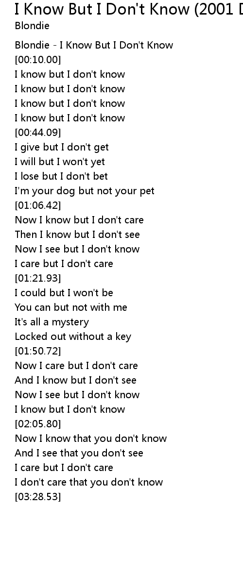 I Know But I Don't Know (2001 Digital Remaster) Lyrics