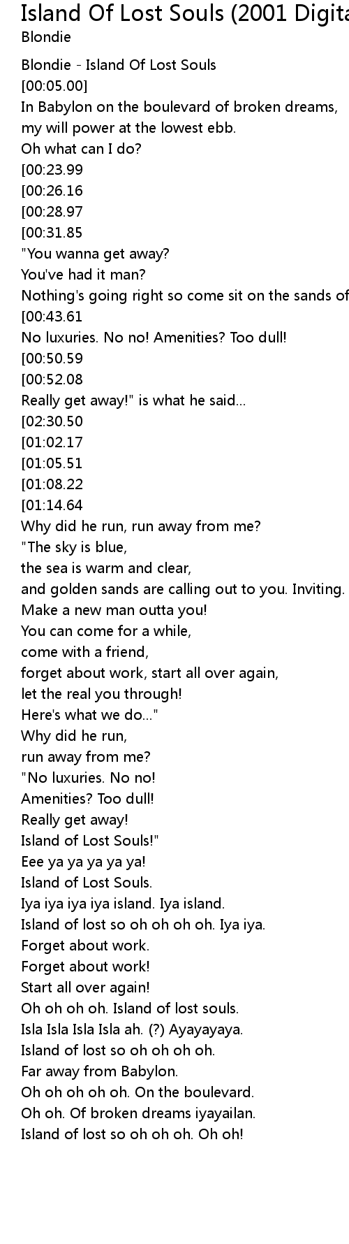 [03:58.82] Oh oh oh oh. Island of lost souls.