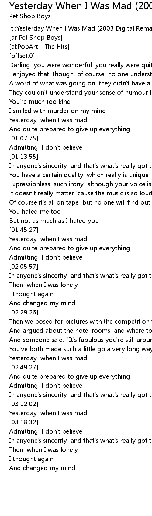 [ti:Yesterday When I Was Mad (2003 Digital Remaster)] |