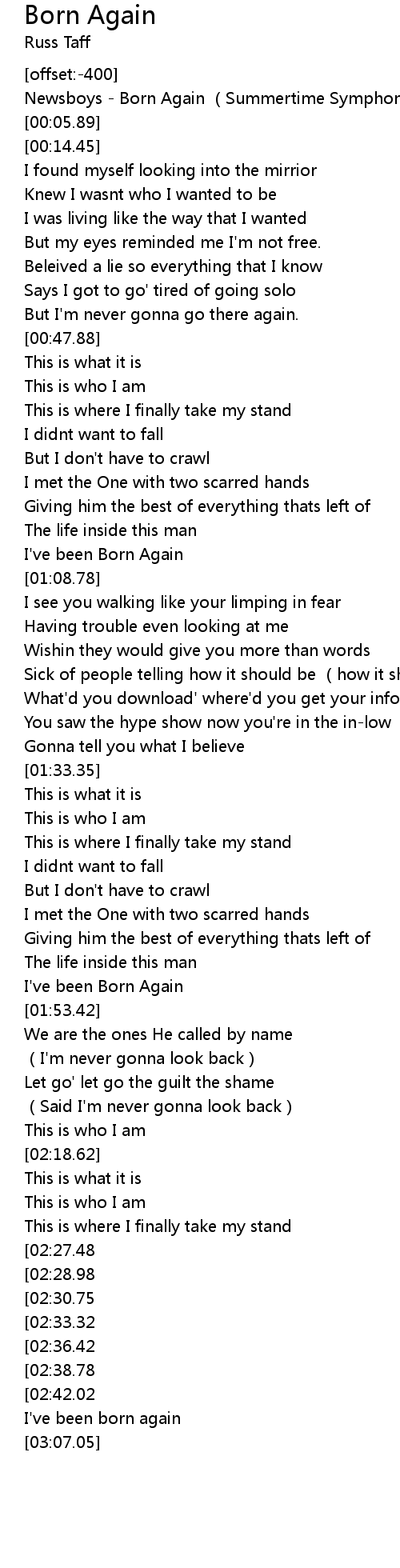| [00:01.12] | Newsboys Born Again Summertime Symphony Mix |