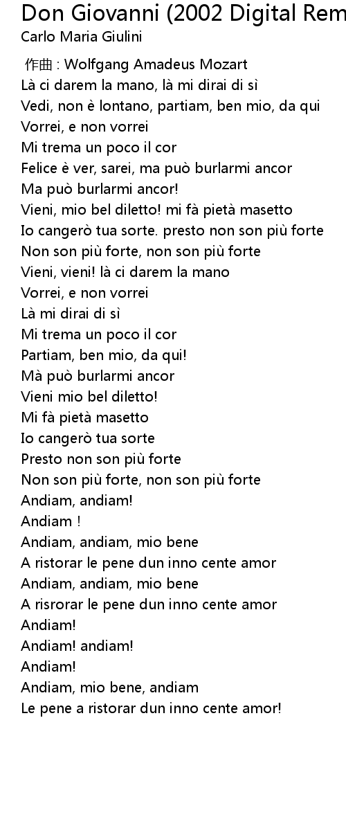 | [01:10.685] | Vieni, vieni! la ci darem la mano |