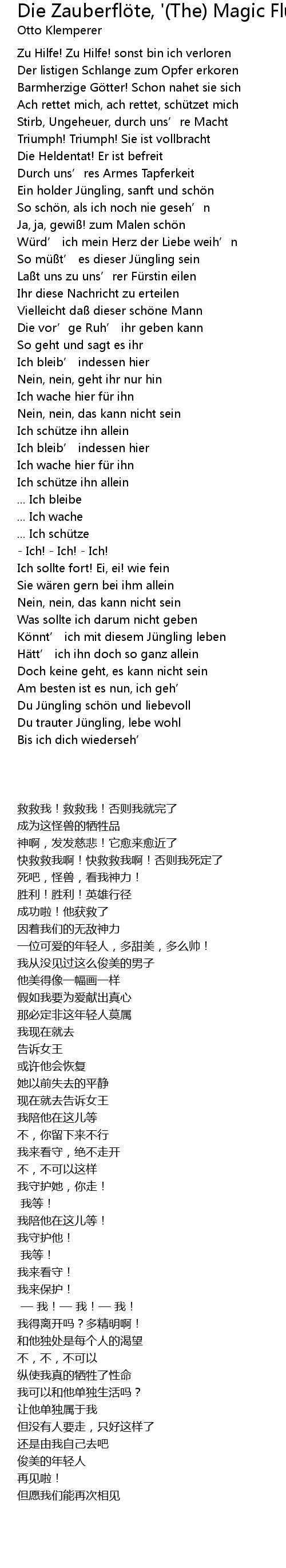 | Song | Die Zauberflöte, '(The) Magic Flute' K620 (2000 Digital Remaster), ACT 1: Introduktion: Zu Hilfe! Zu Hilfe! (Tamino/Damen) |