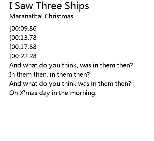| [01:08.91][00:17.88] | I saw three ships come sailing by, |