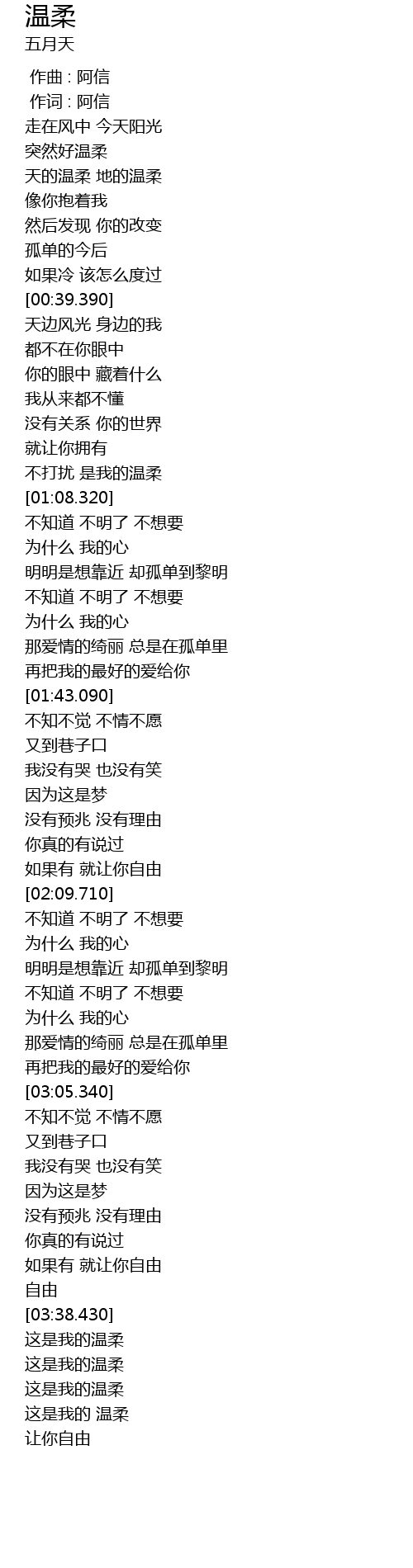 | [03:39.720] | zhe shi wo de wen rou |