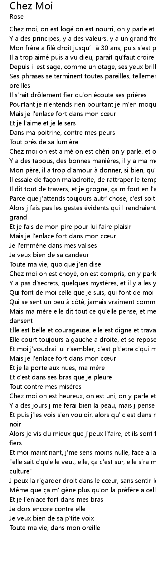 | Chez moi on est aime on est che ri on y parle, et on y rit | |
