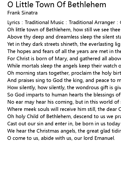 | Oh little town of Bethlehem, how still we see thee lie | |