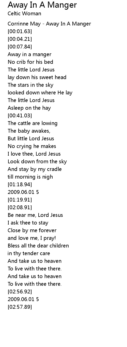 | [00:00.82] | Corrinne May - Away In A Manger |
