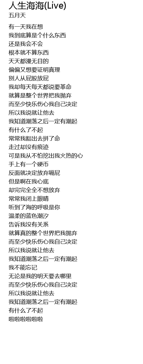 | wo que mei tian mei tian du shuo yao ge ming | |