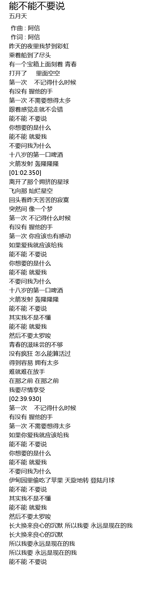 | [02:56.710] | dì yī cì bù xū yào xiǎng dé tài duō |