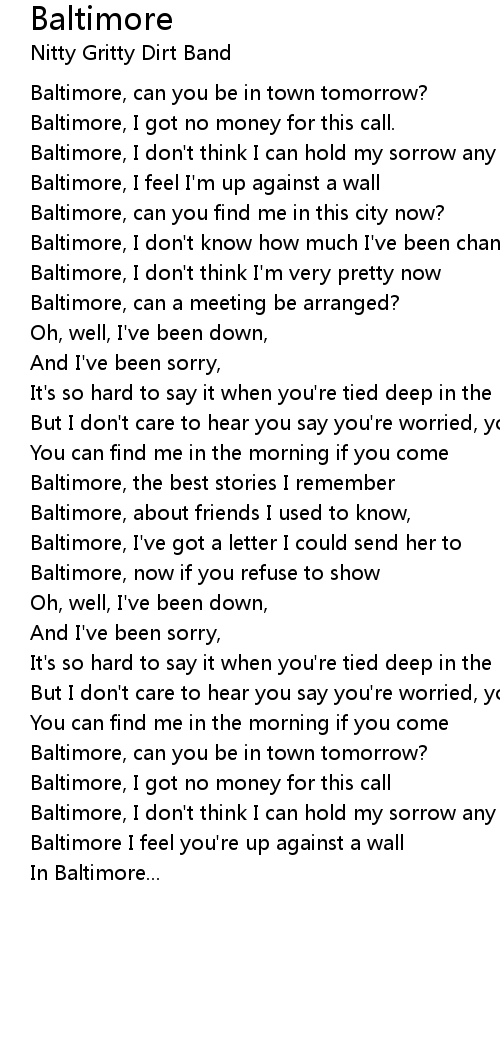 Baltimore, about friends I used to know, |