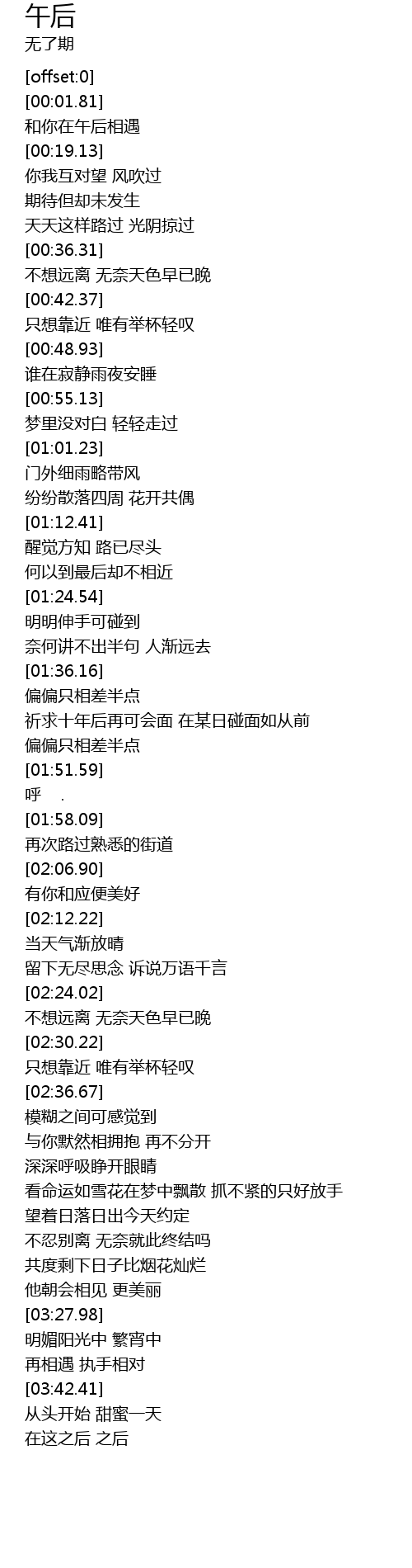| [00:13.75] | 和你在午后相遇 |