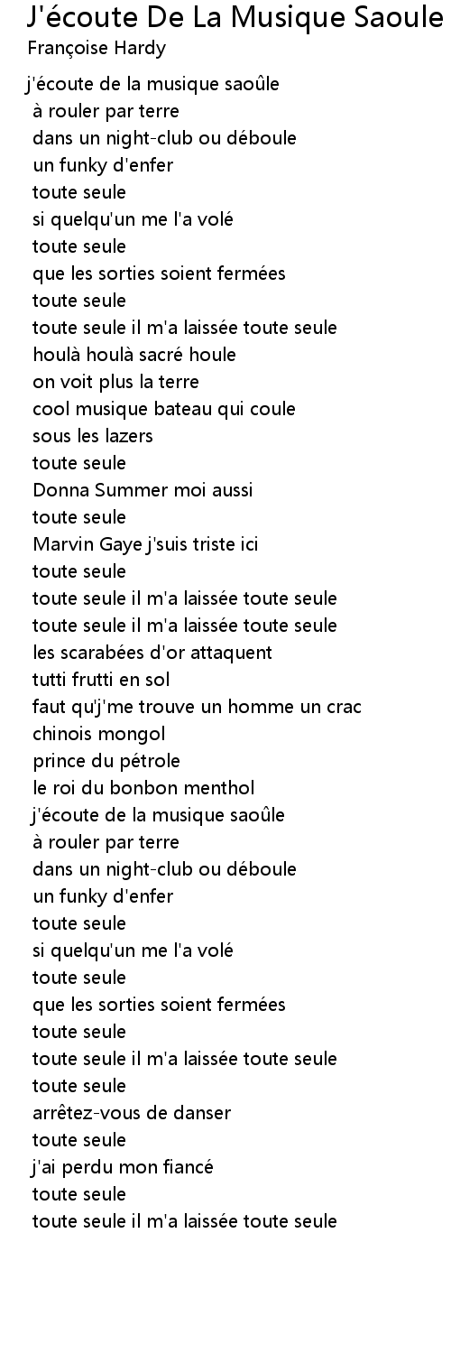 | Song | J'écoute De La Musique Saoule |