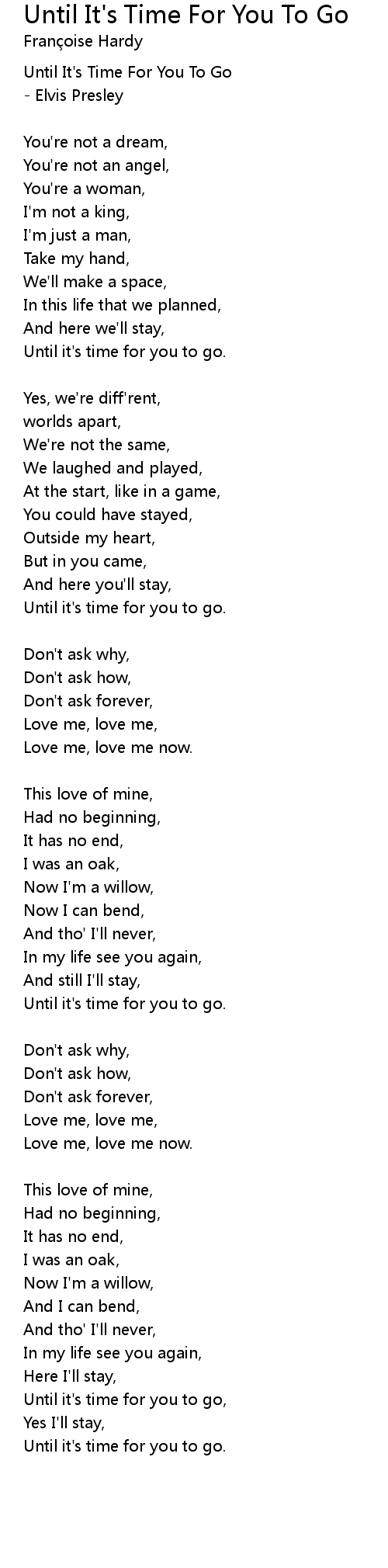 Until It's Time For You To Go Lyrics