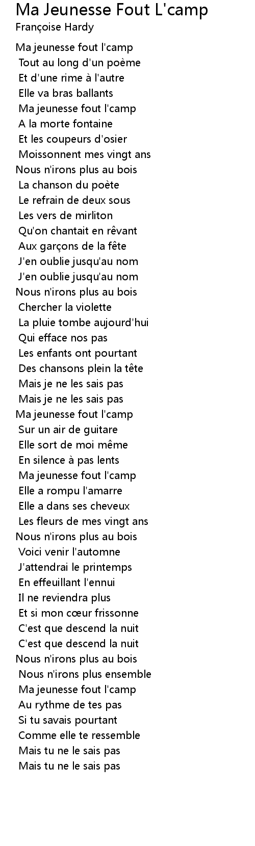 | Song | Ma Jeunesse Fout L'camp |