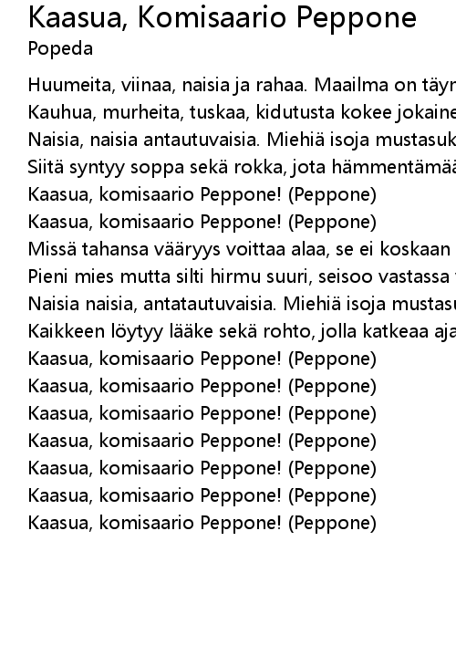 | Siit syntyy soppa sek rokka, jota h mment m n Peppone on nokka. | |