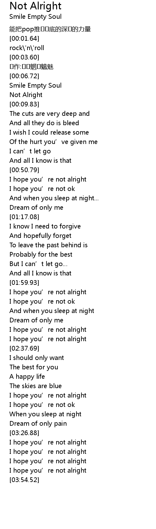 | [00:51.15] | I hope you' re not alright |