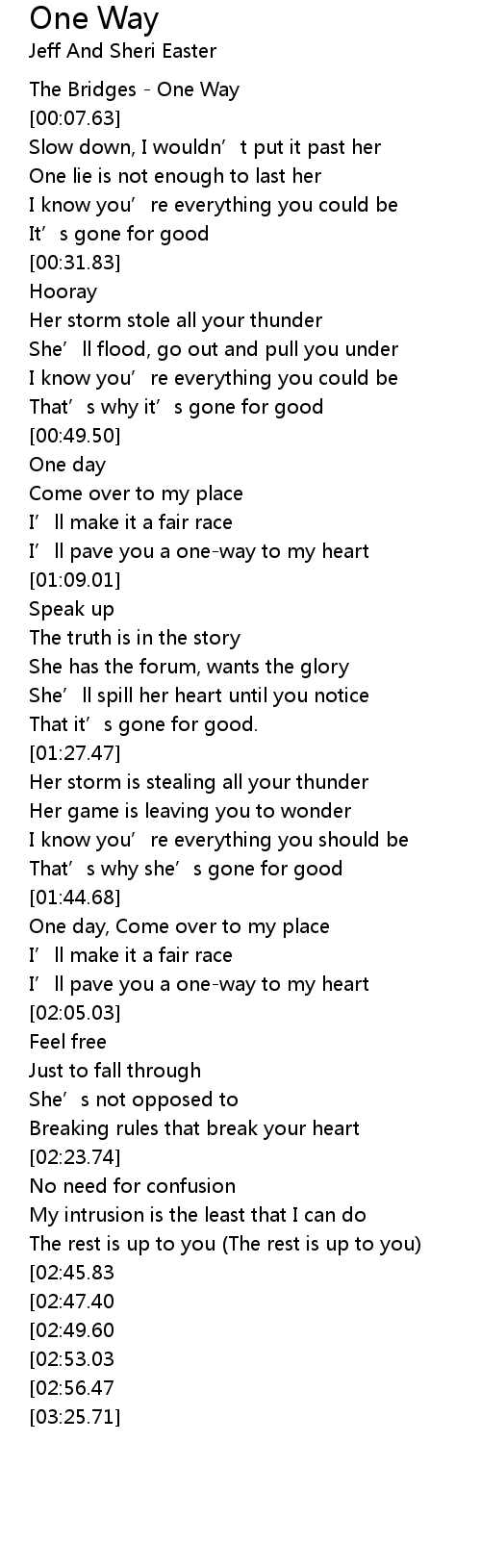 | [00:01.34] | The Bridges - One Way |