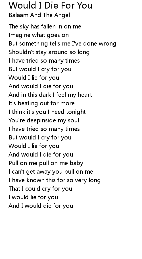 And would I die for you |