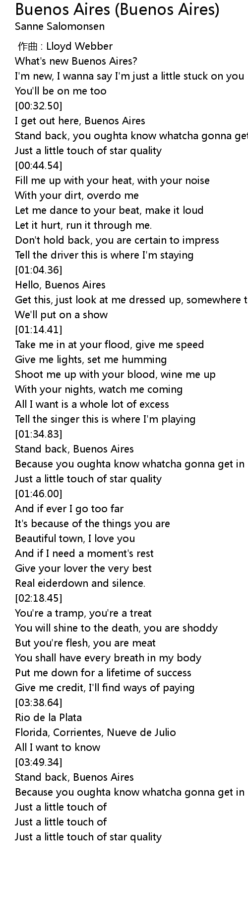 | [03:50.92] | Stand back, Buenos Aires |