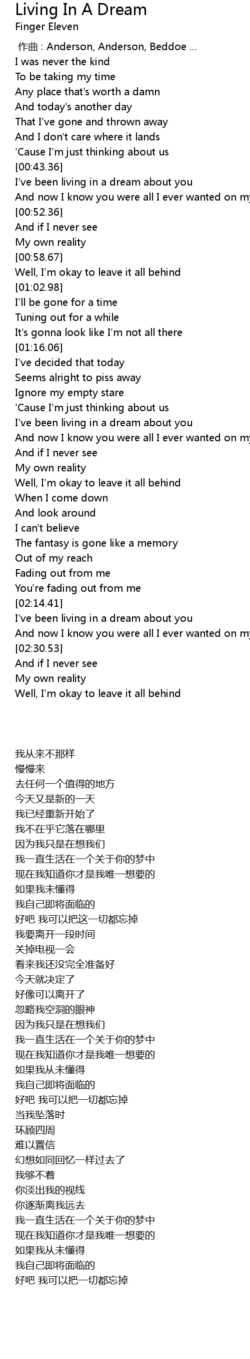 | [00:44.23] | I've been living in a dream about you |
