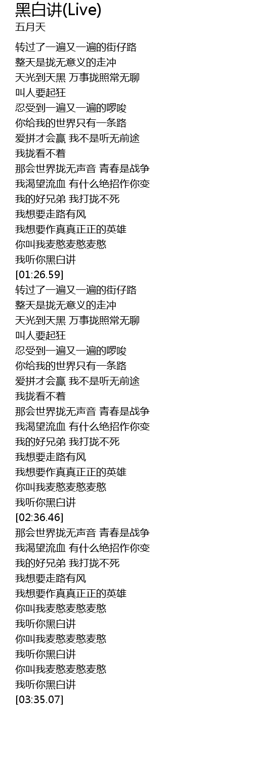 | [03:23.73] | 我听你黑白讲 |
