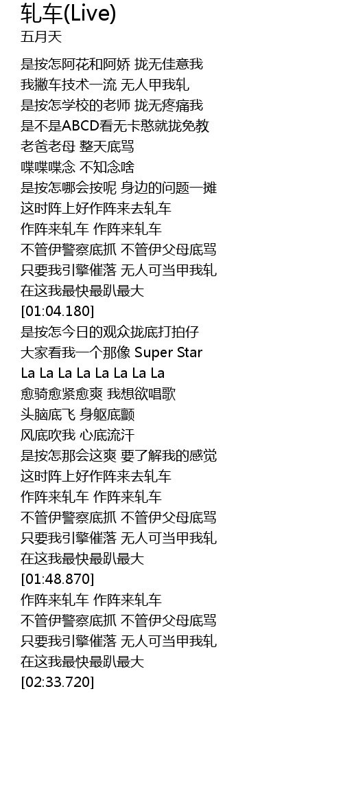 | [01:36.979] | 作阵来轧车 作阵来轧车 |