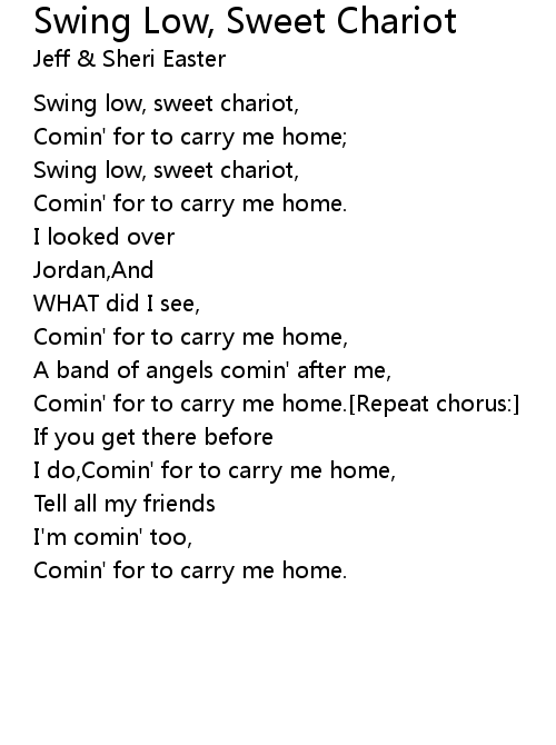 | Comin' for to carry me home.[Repeat chorus:] | |