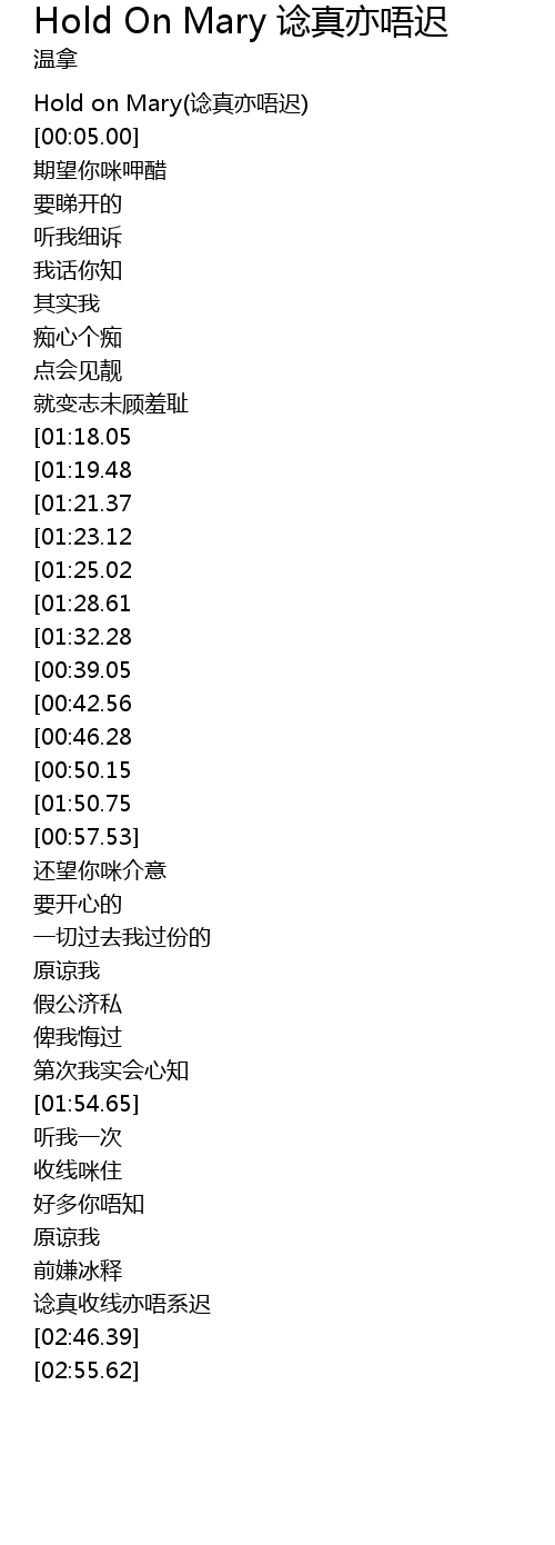 | [00:00.00] | Hold on Mary(谂真亦唔迟) |