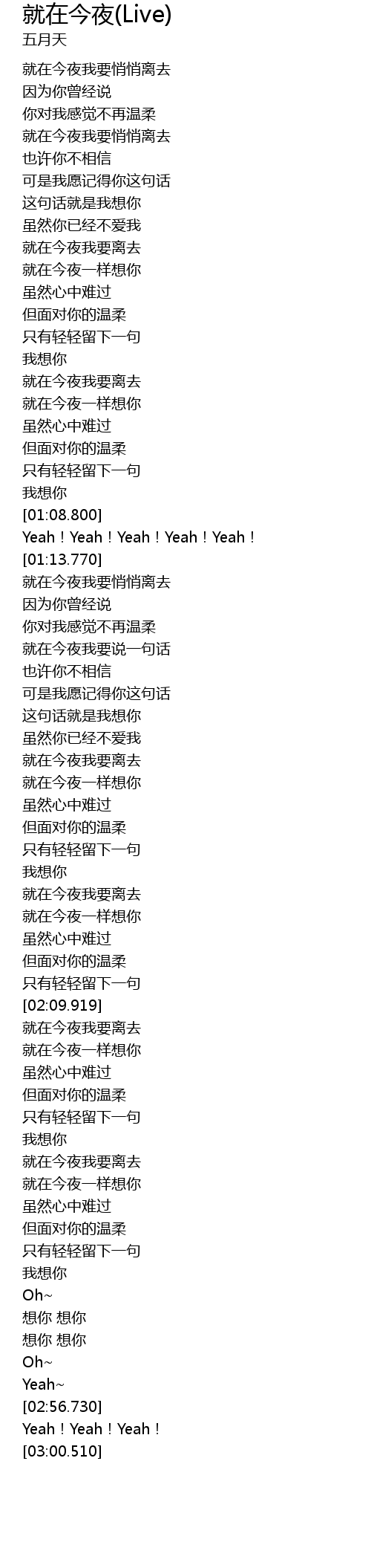 | [02:23.850] | jiù zài jīn yè wǒ yào lí qù |