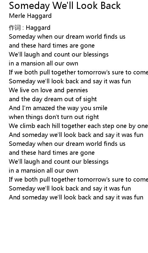 | Song | Someday We'll Look Back |