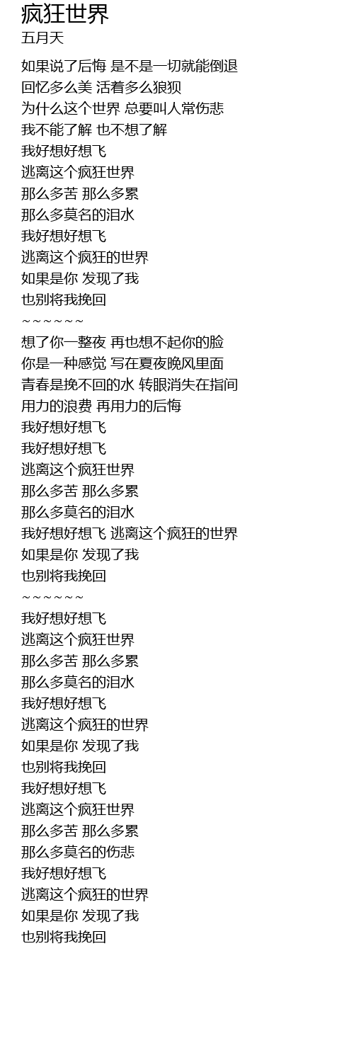 | [00:35.688] | 逃离这个疯狂世界 |
