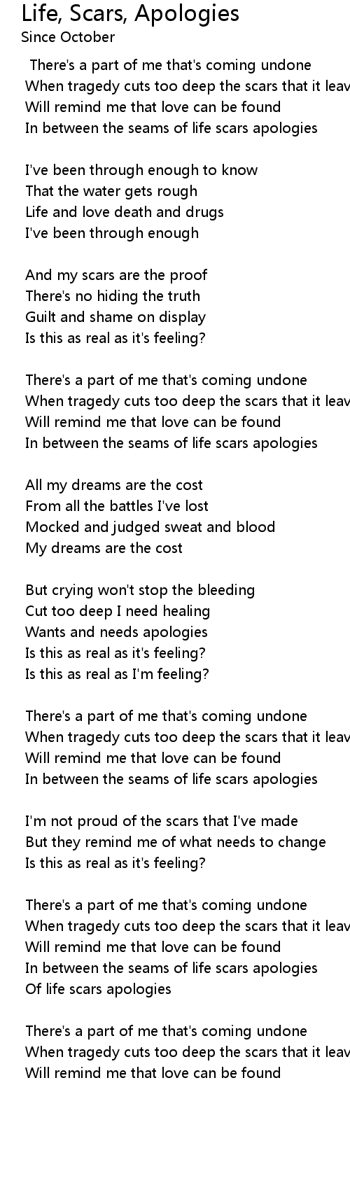 Of life scars apologies |