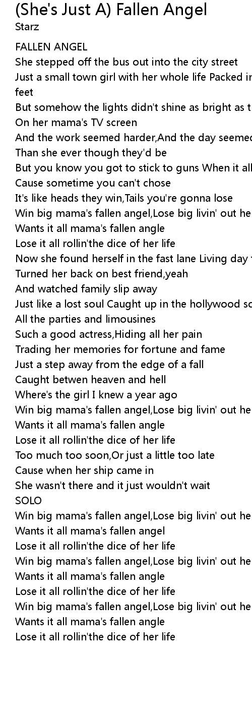 | [03:10.61] | Wants it all mama's fallen angel |