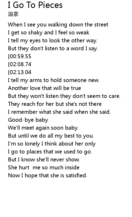 Go to pieces and I almost die |