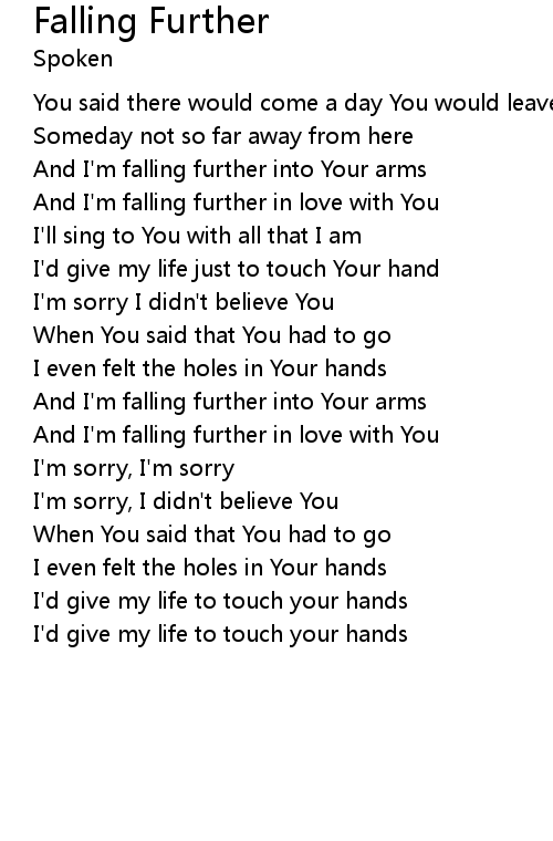 And I'm falling further into Your arms |