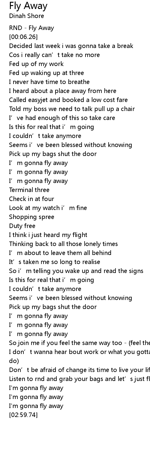 | [02:16.31] | Listen to rnd and grab your bags and let’s just fly away |