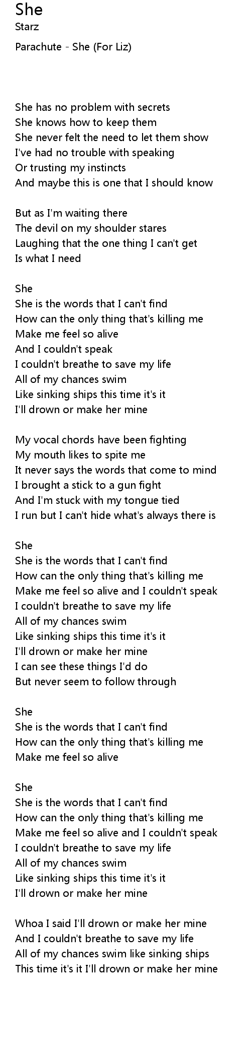 Parachute - She (For Liz)