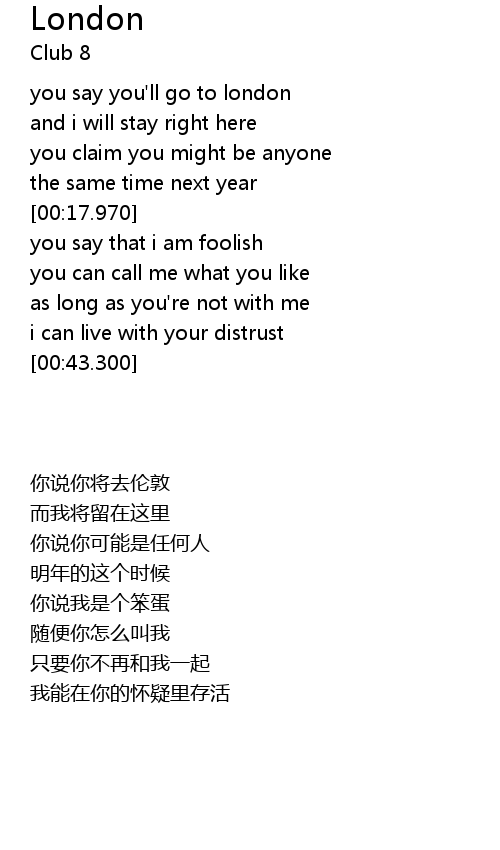 | [00:02.910] | you say you' ll go to london |