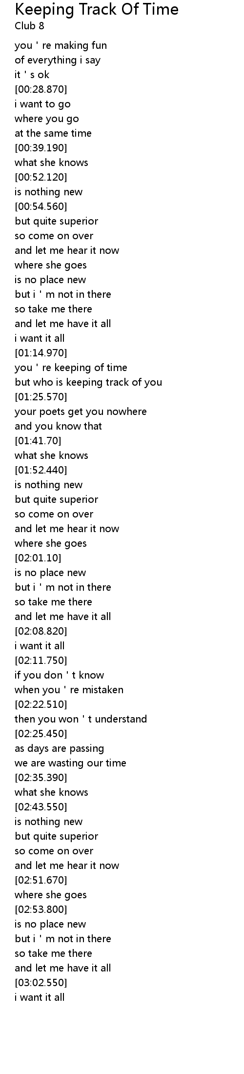 | [01:21.160] | you re keeping of time |