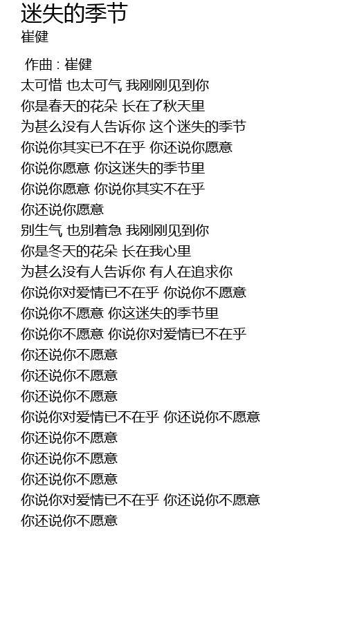 | [02:58.799] | 你说你不愿意 你这迷失的季节里 |