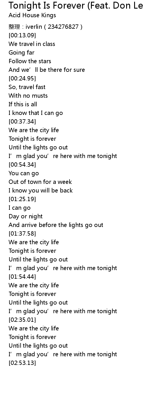 | Song | Tonight Is Forever (Feat. Don Lennon) |
