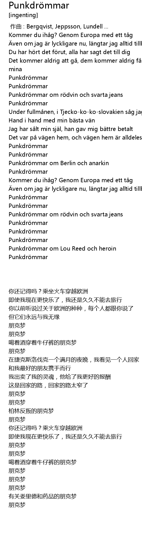 | [00:48.59] | Punkdrömmar om rödvin och svarta jeans |
